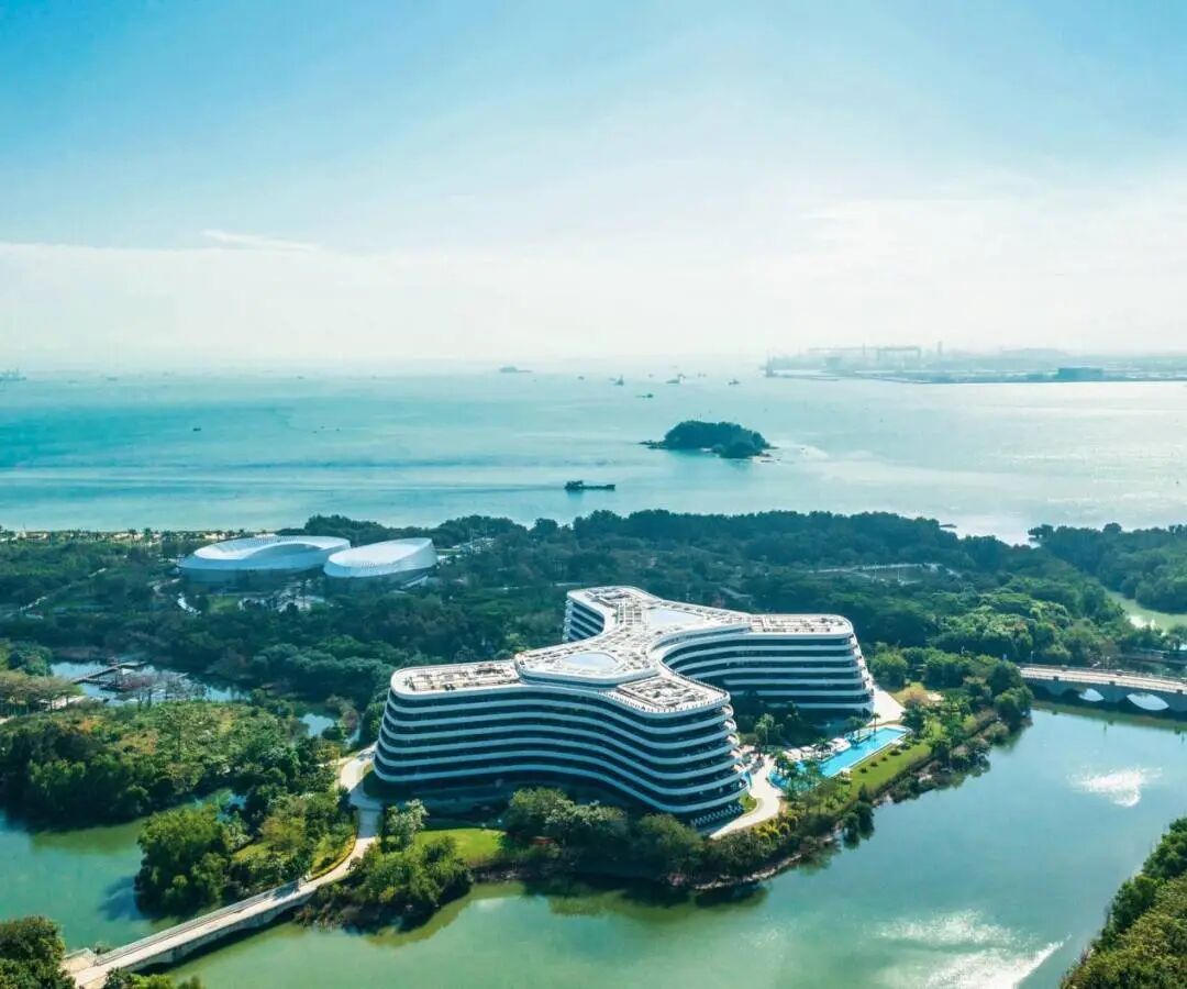 坐落于美丽的南沙湾畔,设计以简约现代的黑白风为基调,与伶仃洋自然景观融为一体。酒店拥有365间豪华客房,均带景观阳台,室内外恒温泳池、万平私家园林环绕,宜商宜旅,是观日出、赏晚霞、享品质生活的理想之地。
